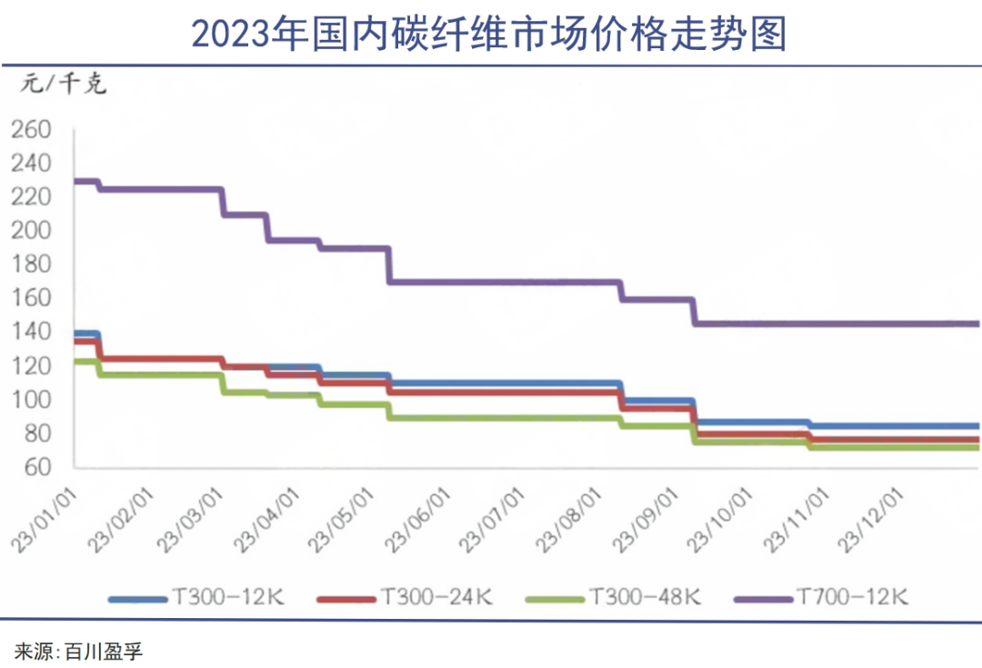 与此同时,看到碳纤维前期价格行情火热,各路资本涌入,头部企业也大幅扩大产能。供需错配之后,当下产品价格较2022年的高点接近腰斩。