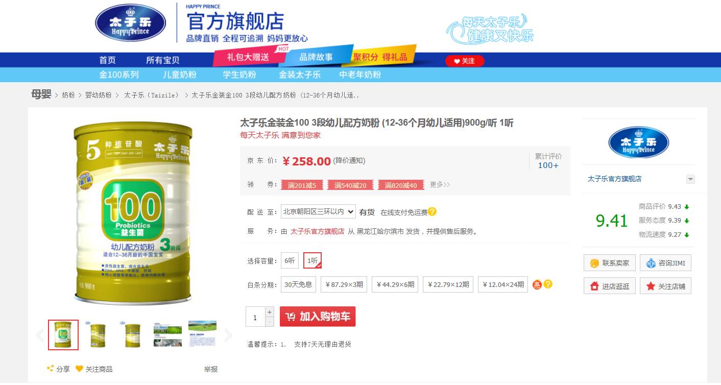 对此,五谷君粗略统计一下,在京东商城上,太子乐官方旗舰店里面就有太子乐金装100益生菌、太子乐金装、太子乐金装乳铁蛋白LF、太子乐金装fos、太子乐金装V+、太子乐金装金字塔等6款金装婴幼儿配方乳粉。