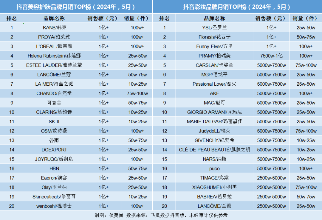 得益于618大促的带动作用,5月主流电商平台战绩斐然。天猫前十品牌访客数较上月翻番,抖音护肤品类TOP20品牌预估销售额均破亿,快手也在近半年内首次出现了预估销售额过亿的品牌。
