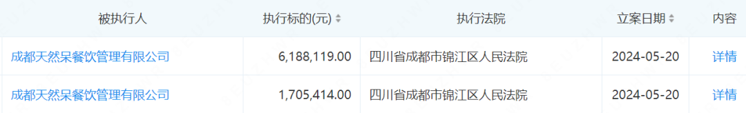 近日,天然呆奶茶又双叕被引发媒体广泛报道。5月20日,企查查信息显示,成都天然呆餐饮管理有限公司因无正当理由拒不履行和解协议,被成都市锦江区人民法院列为失信被执行人(老赖)。公司新增两则被执行人信息,执行标的合计789万余元,涉及买卖合同纠纷和民间借贷纠纷案件。而这已经不是天然呆奶茶第一次被媒体曝光特许经营合同纠纷。