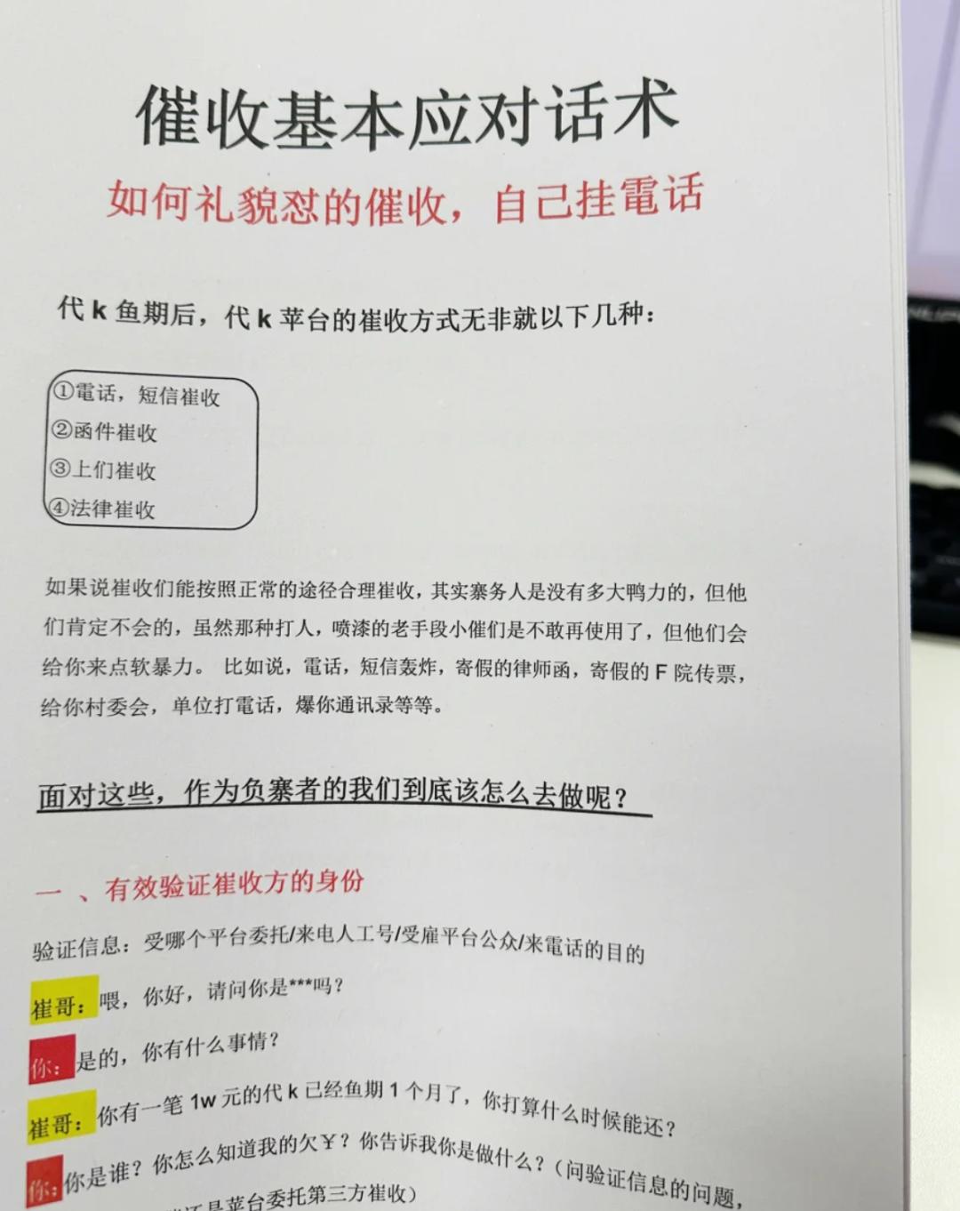 他曾遇到一个三十多岁、负债二十多万元的女客户。张玉衡教她先把头几期还了,不然可能涉嫌骗贷,要吃官司。再教她,接到催收电话,就一味示弱,让对方以为她好欺负,说些恐吓的话,到时直接把录音提交到银保监会和黑猫投诉。