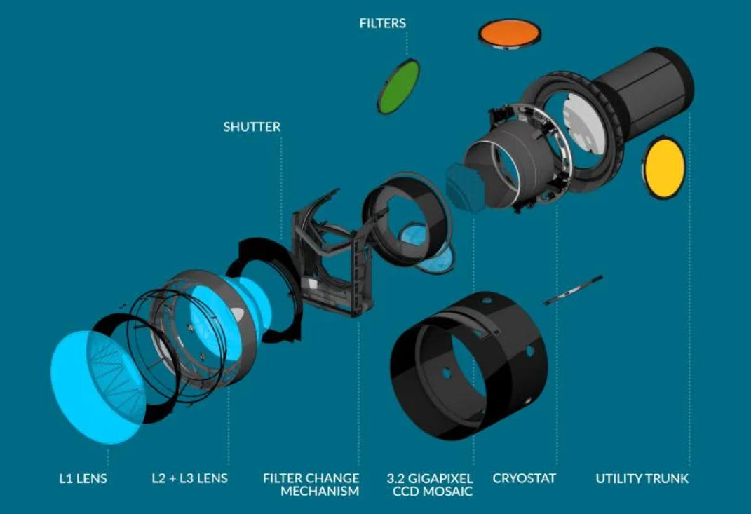 LSST三镜头系统可用于视野校正,这样不必扩大设备尺寸也能观察到更大范围的天空。镜头的焦平面处装有CCD探测器,负责捕捉收集光线。LSST的另一个重要部件是滤镜更换器。Bregeon 说:“在天文学特别是宇宙学研究中,须要以多个光学波段观察天空,最长的波段接近近红外。使用滤镜,就能只让特定波段的光线通过镜片。”