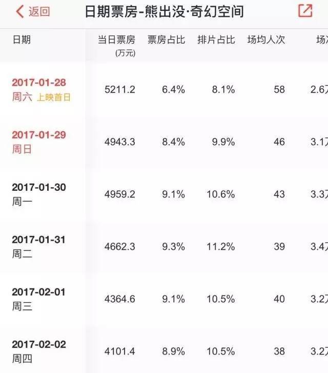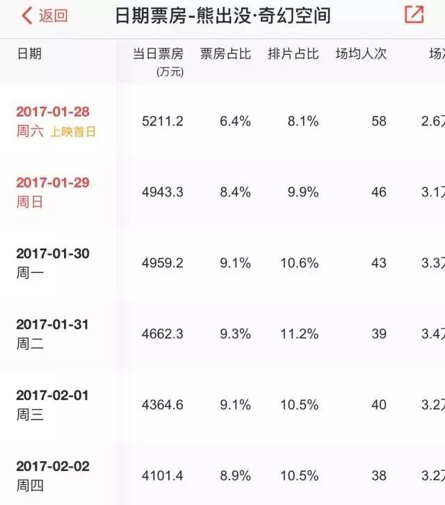 在春节档的6天中,《熊出没·奇幻空间》票房走势平稳