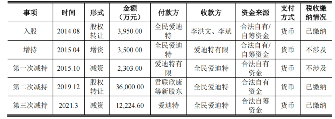 2021年1月,全民爱迪特再次减持,爱迪特同意回购全民爱迪特所持的公司608.42万股股份,回购价格为1.22亿元。减资完成后,爱迪特注册资本变更为4359.87万元,全民爱迪特不再持有爱迪特股份。