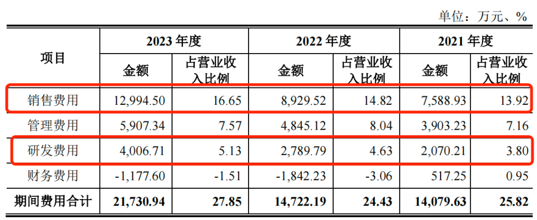从研发费用来看,报告期内,爱迪特的研发费用分别为2070.21万元、2789.79万元和4006.71万元,各期研发费用率分别为3.80%、4.63%和5.13%。