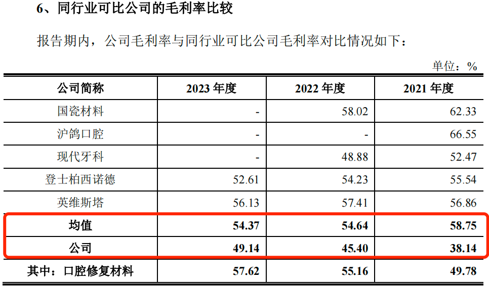 2、毛利率低于同行公司,种植牙集采或影响盈利