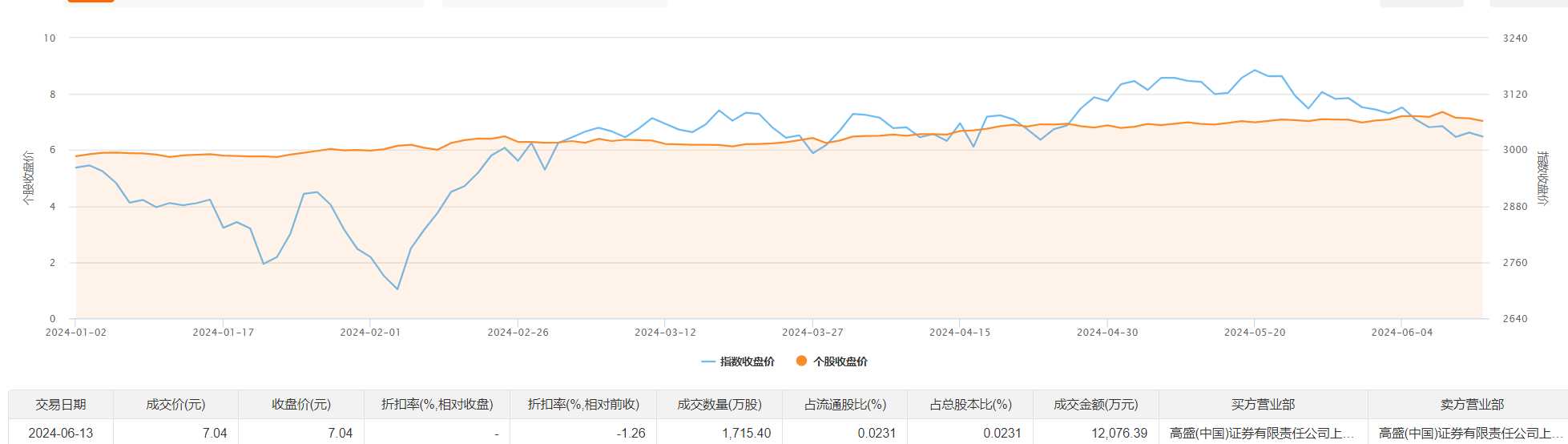 交通银行6月13日大宗交易成交1715.4万股,成交额1.21亿元,占当日总成交额的10.39%,成交价7.04元,较市场收盘价7.04元持平。