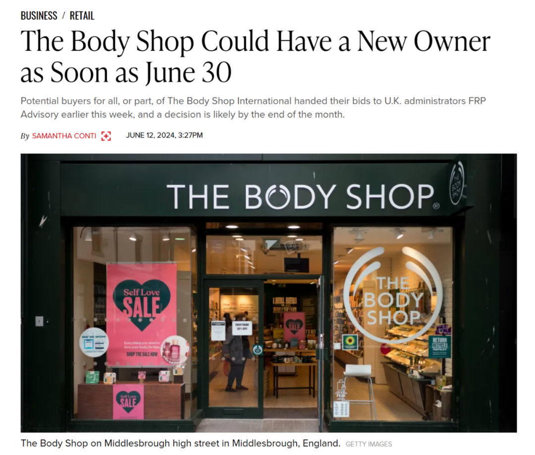 今年几度被传破产欲卖身的The Body Shop(美体小铺),有了新进展。据WWD报道,美体小铺的全部或部分潜在买家,已向英国托管公司FRP Advisory递交了投标书。本周,该竞标截止日期已经结束,美体小铺最快或将在6月30日前被正式收购。