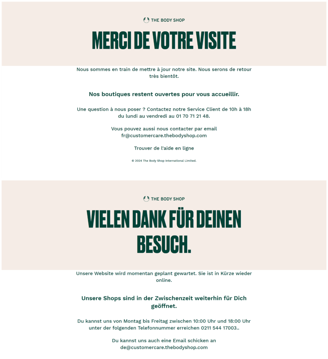 美体小铺英国业务爆雷之后,又相继传出美体小铺德国、法国、美国和加拿大等地的业务相继停摆或破产。在多米诺骨牌式的连锁反应之下,美体小铺陷入重大危机,其多个国家的分公司官网已无法正常交易。