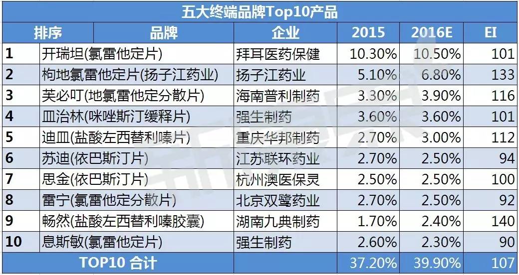 TOP10品牌竞争激烈,开瑞坦优势明显