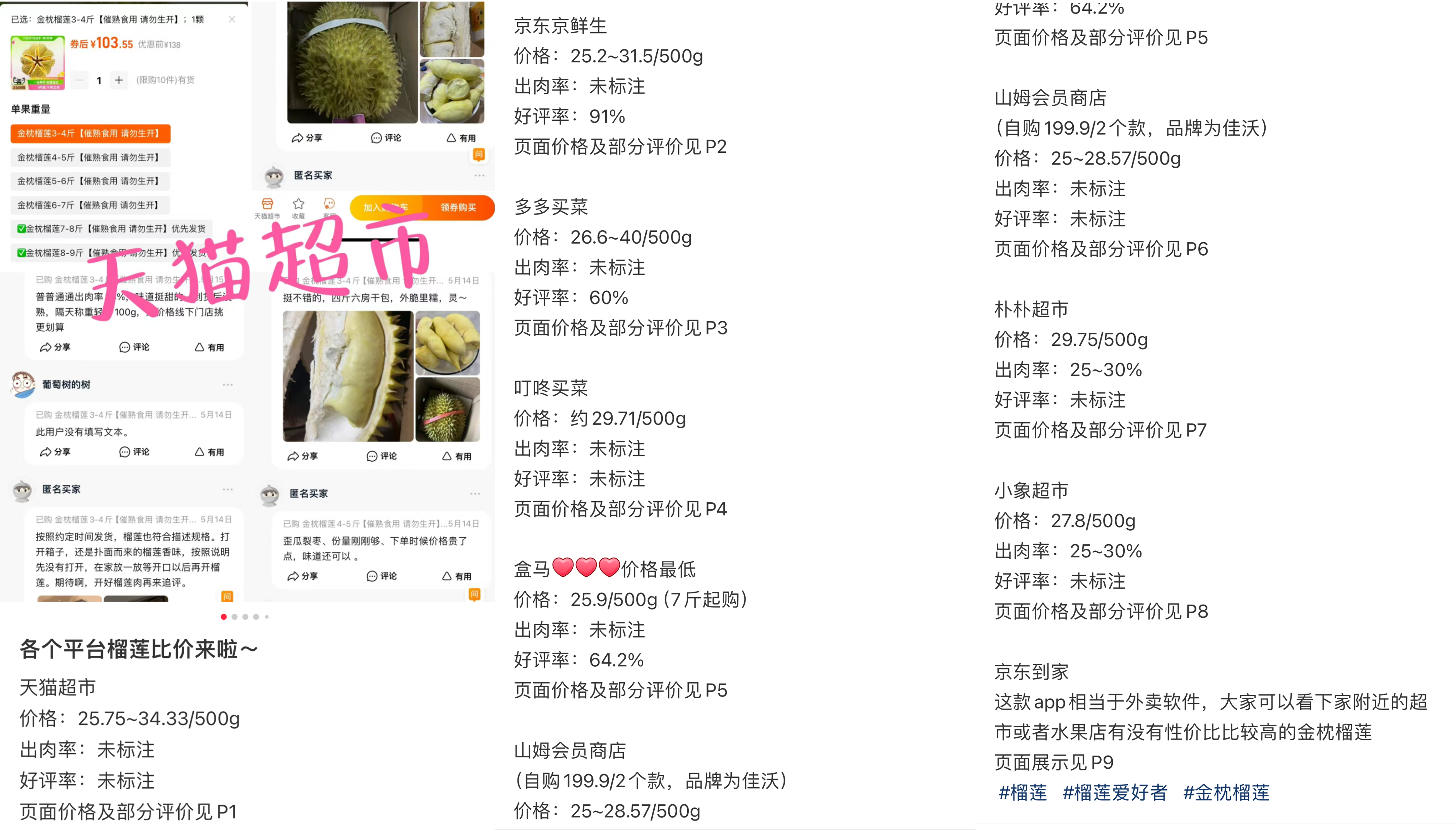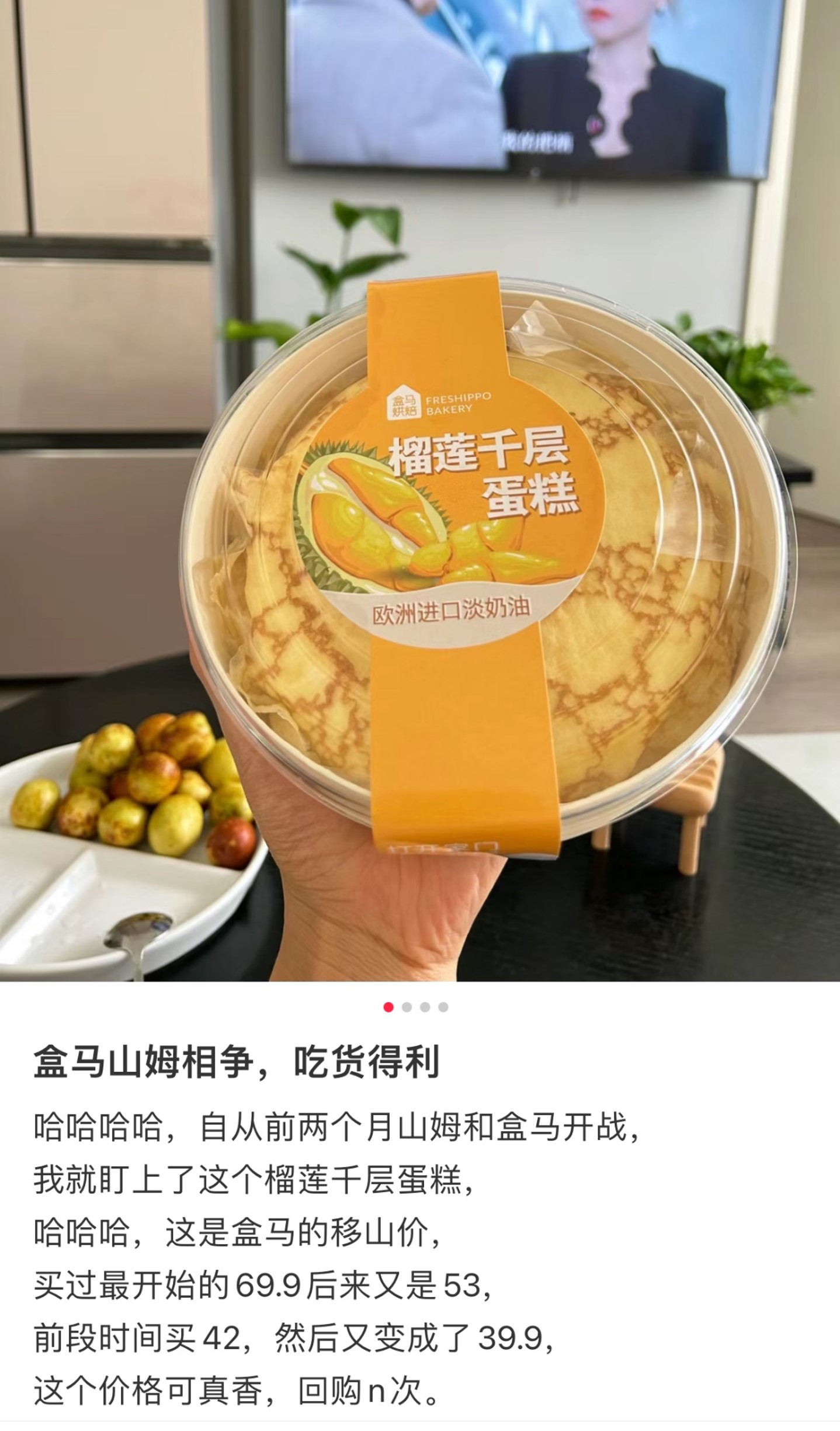 一方面,近期大型商超通过榴莲千层的价格竞争,成功吸引了一部分消费者从线上电商平台转向线下O2O零售模式,线上榴莲千层的销售额一定程度下跌。