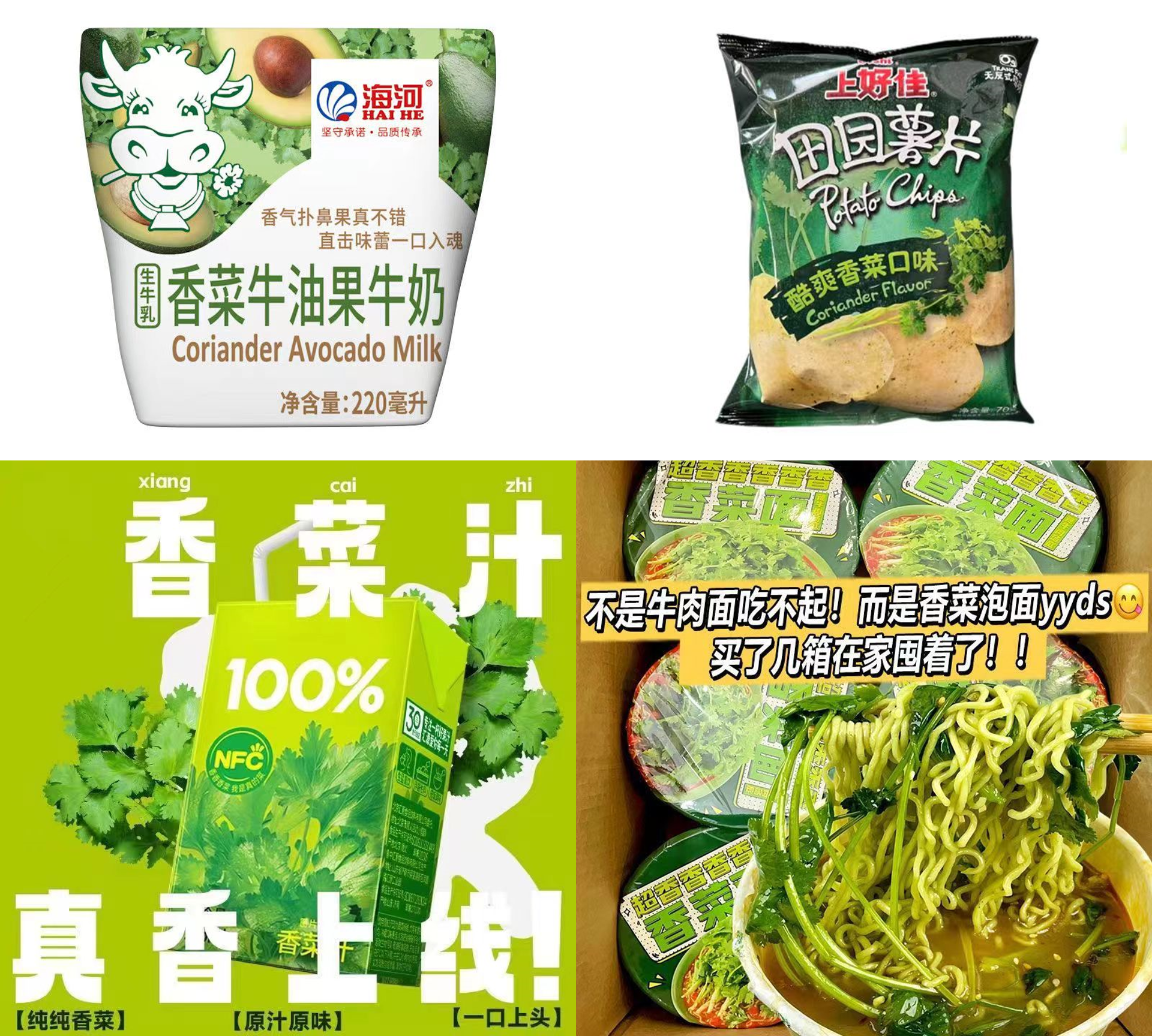 如今各种猎奇口味的产品频出,如香菜泡面、香菜牛奶、折耳根粥、榴莲凉茶、螺蛳粉粽子……