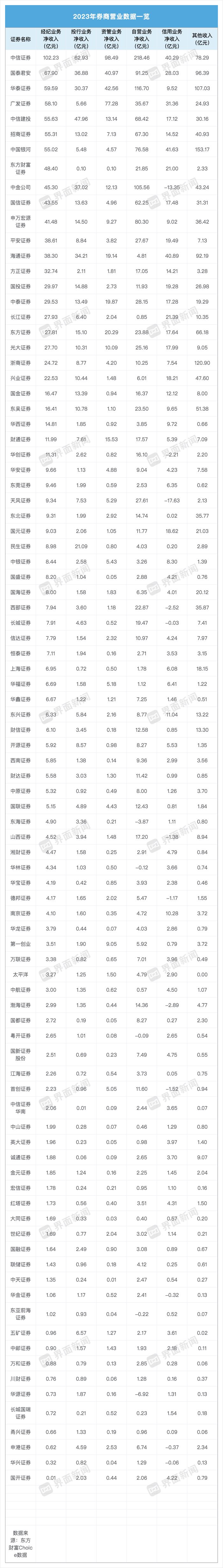 界面新闻记者从业内获悉,近日券商2023年经营业绩各项细分指标数据已经出炉,协会将经营情况一对一送达各家券商。
