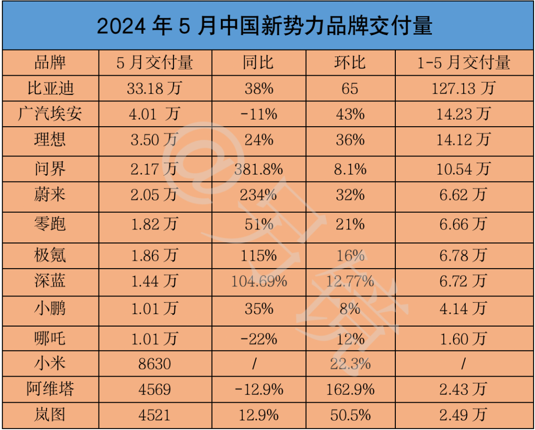 值得注意的是,得益于以旧换新政策和各家积极调整优惠策略,在刚刚公布的新势力品牌5月销量却表现出了意料之外的回暖,理想、蔚来环比销量都有明显提升。
