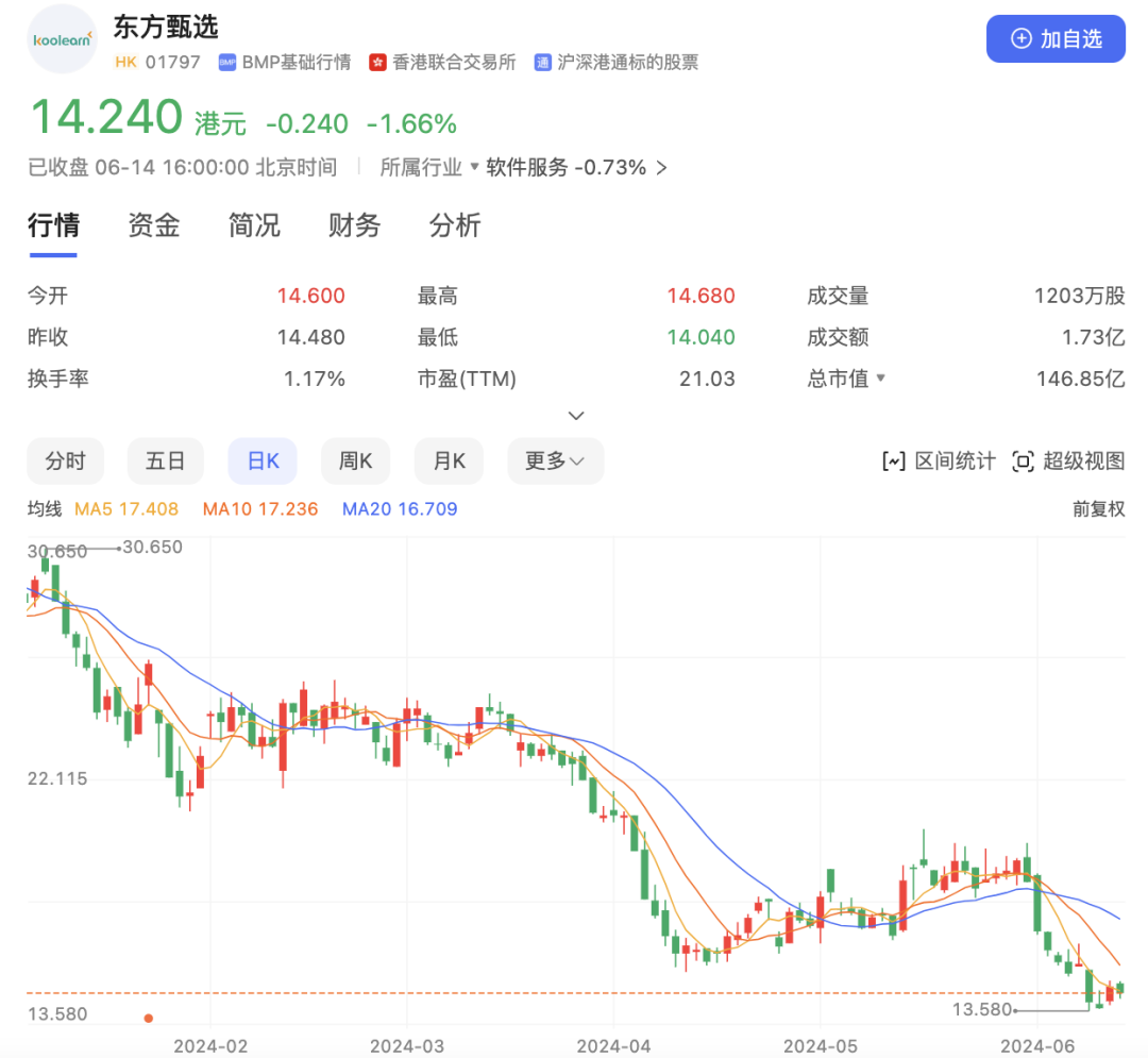 俞敏洪董宇辉合体直播,暂时稳住了东方甄选的股价。6月13日,东方甄选股价止跌,单日涨近6%。