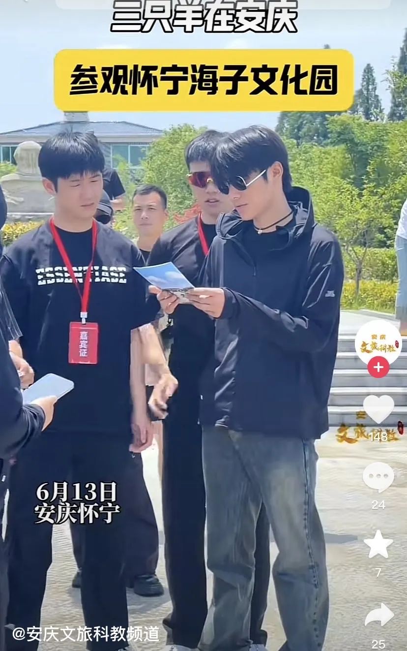 除了拍摄文旅宣传片,三只羊网络为第一站安庆之行拍摄了一段城市宣传片,片中三只羊旗下主播穿上当地服饰、品尝美食、体验非遗文化。而在不久前三只羊网络发布的宣传海报中,小杨哥站在了海报的C位,身后是旗下一众主播,人物站位和场景设计也与“与辉同行阅山河”海报相似。