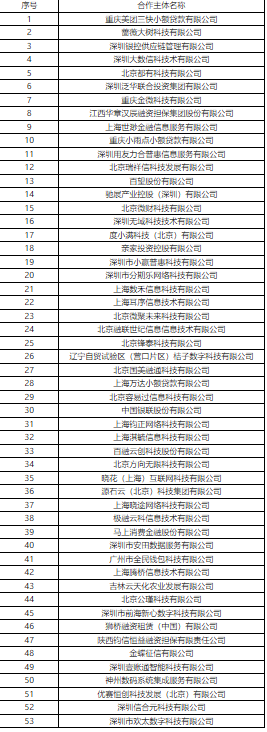 此外,在近日对于合作导流获客机构的公示中,亿联银行还公布了合作导流的53家机构。