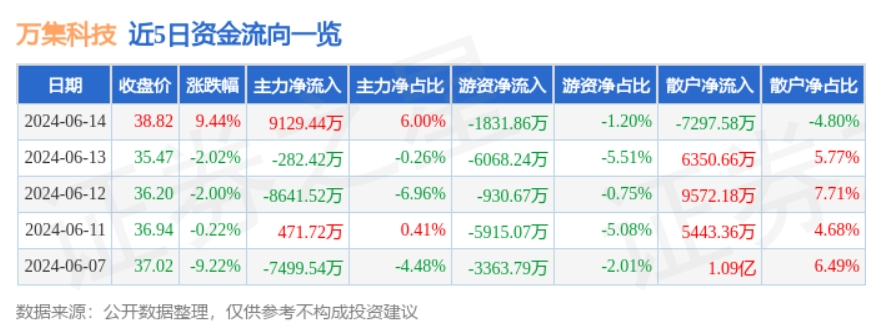 6月14日的资金流向数据方面,该股主力资金净流入9129.44万元,占总成交额6.0%,游资资金净流出1831.86万元,占总成交额1.2%,散户资金净流出7297.58万元,占总成交额4.8%。