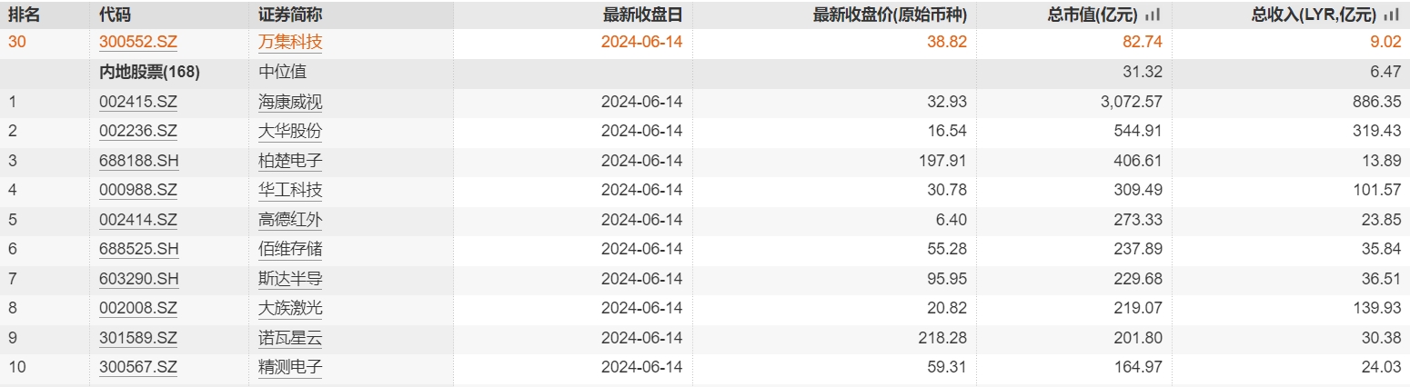 Wind数据显示,根据最新收盘股价、总市值(亿元)、总收入(亿元)、净利润(亿元)、ROE(%)、Beta(最近100周)多项指标综合比较,万集科技在同业综合比较中排名第30位。