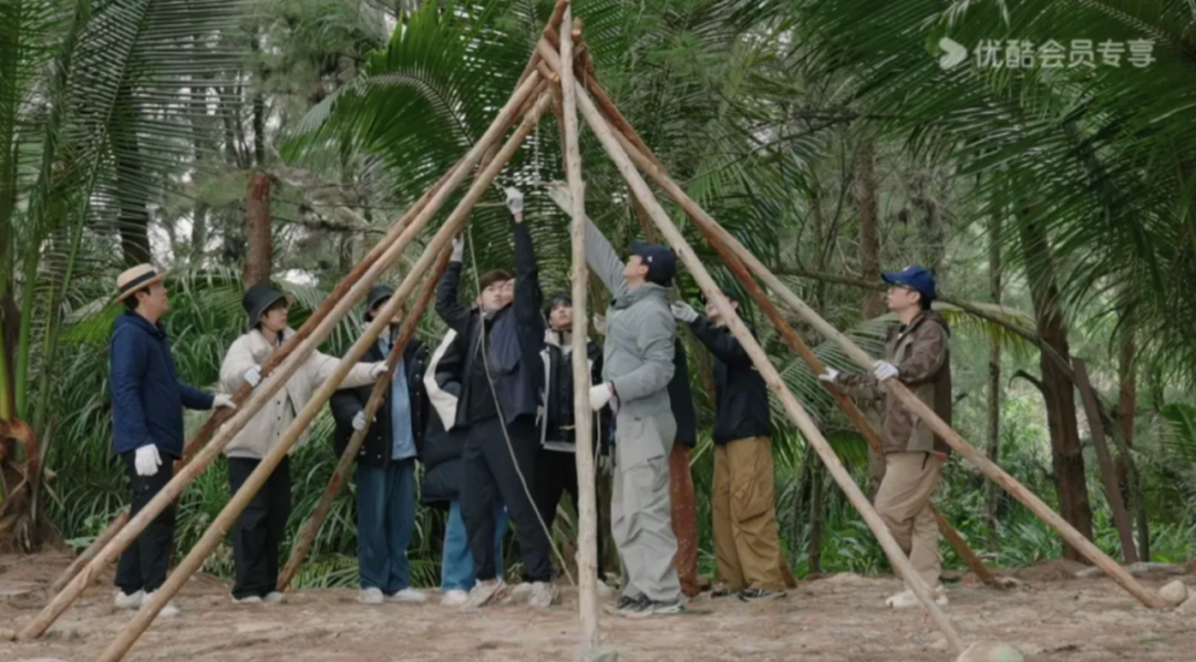少年们甚至学会了放弃对抗,通过互通有无的联盟——你把锅借我,我每天送你们5瓶水——来增加生存的概率。从个人奋斗到团体协作,再到群体交换,少年们在这个荒岛实验中一步步习得人类社会的生存法则。在第三期中,少年们在飞行嘉宾吴奇隆的引导下,共同搭建出一处容纳11人的“集体宿舍”,当他们成功铺上防雨布,为一个目标同心协力的“团魂”也在这片海岛上冉冉升起。