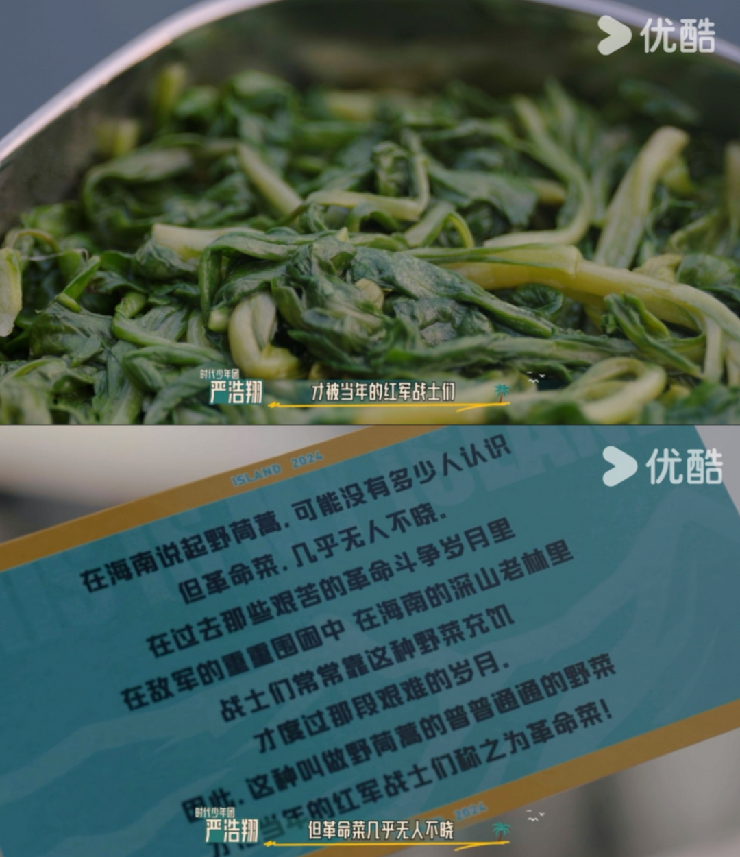 不仅如此,在最近的两期中,少年们还通过严格的海岛军训,体验海岛战士的真实生活,通过吃“革命菜”见证驻礁战士饮食的变迁,感受老一辈守岛官兵们筚路蓝缕、以启山林的艰苦历程,致敬驻礁战士的“老海岛精神”。
