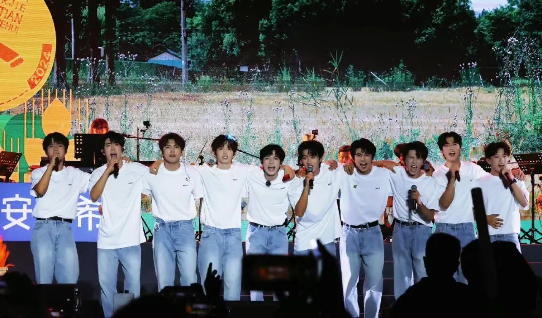 《种地吧》将十个原本“默默无闻”的少年拉到田间种地,不仅让节目在招商上极具竞争力,十位少年组成的“十个勤天”线上线下产品卖爆之余,不断解锁主流晚会、音乐节、演唱会等综艺以外的“副本”。
