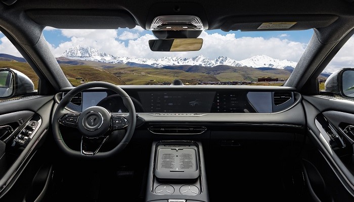 车内,阿尔法S5引入抬头显示系统替代传统仪表盘,显示包括车速、挡位、续航里程等信息。中控区域精简了物理按键,加入了悬浮式触控屏,下方配置空调出风口和无线充电板。方向盘采用双辐设计,集成辅助驾驶和多媒体控制键。