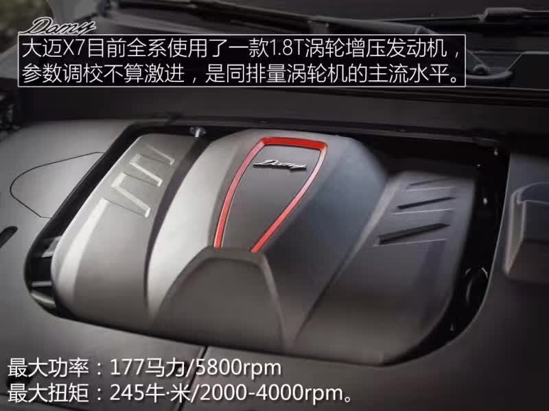 “目前动力系统只有1.8T+5MT这一套……期待自动挡车型的朋友别着急,2017年大迈X7还将推出1.8T搭配双离合、2.0T搭配双离合的车型,此外还将有1.5T搭配5MT的车型,产品线将非常丰富。”