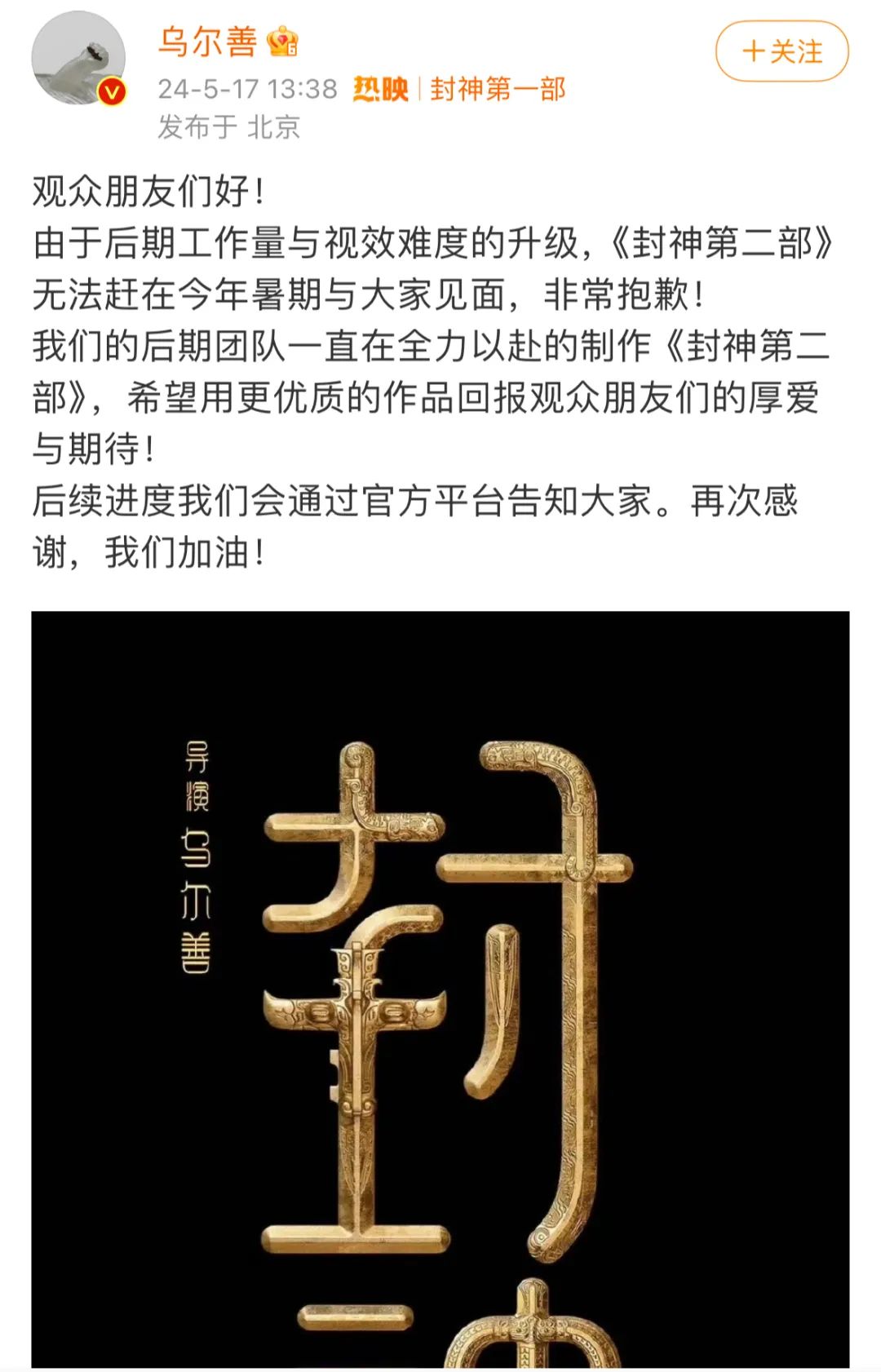 《酱园弄》被爆将重新剪辑、《哪吒之魔童闹海》从“暑期档上映”变为“今年上映”、《封神第二部》特效制作仍未完成,三部第一梯队的影片大概率无缘暑期档后,外界谈起今年暑期档也变得惆怅了许多。