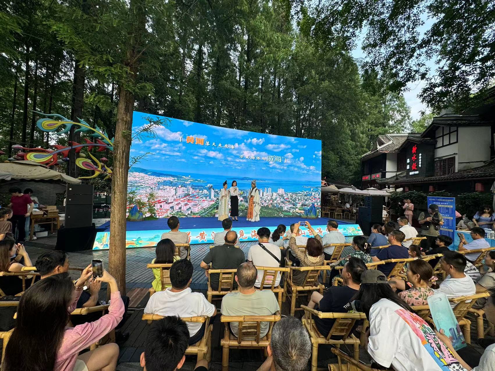 本场推介活动在成都百年老茶馆鹤鸣茶社举行,现场古色古香、茶韵浓浓,融合歌曲、舞蹈、问答抽奖等多种互动形式,生动呈现当巴蜀茶文化遇到滔滔黄河水时碰撞出的精彩火花,盛情邀请大家在夏天到山东看仙境海岸,以润物无声的形式推介了“沿着黄河遇见海”文旅品牌,让在场观众体会到了“共饮黄河之水,鲁川一家亲”的浓浓情谊。