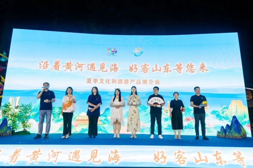 活动以《沿着黄河遇见海》主题曲拉开序幕,山东各地市文旅推荐官围绕“畅游山东”“品味山东”“乐宿山东”“夜游山东”四大主题,为在场嘉宾及市民游客带来了一场别具风格的文旅推介盛宴。“畅游山东”聚焦交旅融合,介绍了山东高铁、航空、自驾、邮轮等丰富多彩、个性化的出行选择,以及优质的海边休闲度假资源;“品味山东”聚焦美食文化,展示了海鲜、淄博烧烤、烟台苹果、青岛啤酒等山东各地的风味佳肴;“乐宿山东”聚焦住宿体验,如青岛涵碧楼等品质酒店,济宁尼山圣境等文化主题酒店以及泰安九女峰等精品民宿;“夜游山东”聚焦夜间旅游,介绍了临沂琅琊古城、济南环联夜市、枣庄台儿庄古城等山东各市的夜间旅游资源,诚挚邀请大家在夏日里来山东享受一段愉快的时光。