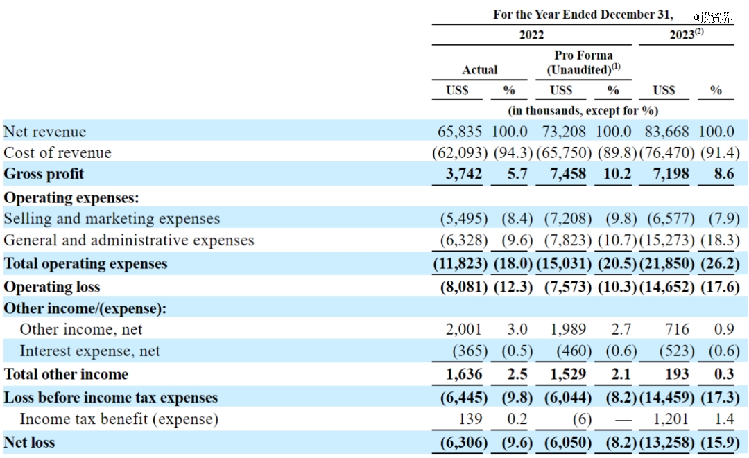 在此基础上,星竞威武集团从 2022 年的 6580 万美元(约4.7亿元人民币)增至 2023 年的 8370 万美元(约 6亿元人民币);毛利从 2022 年的 370 万美元(约2700万人民币)增至 2023 年的 720 万美元(约5200万人民币),同年的毛利率分别为 5.7% 和 8.6%。