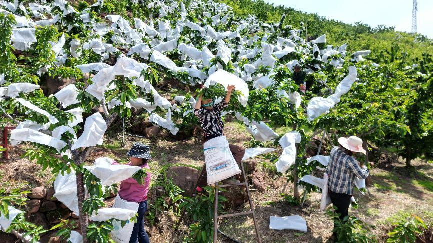 “黑珍珠已是汉源甜樱桃的明星产品,几乎所有适合种植的乡镇都有栽种。”据了解,甜樱桃在水果中‘娇气’程度远超草莓,受雨水影响极易产生果裂,影响观感和品质。“通过套袋的方式隔绝雨水、果蝇产卵,以确保产品的高品质。”汉源县农业农村局高级农艺师聂巍谈到。