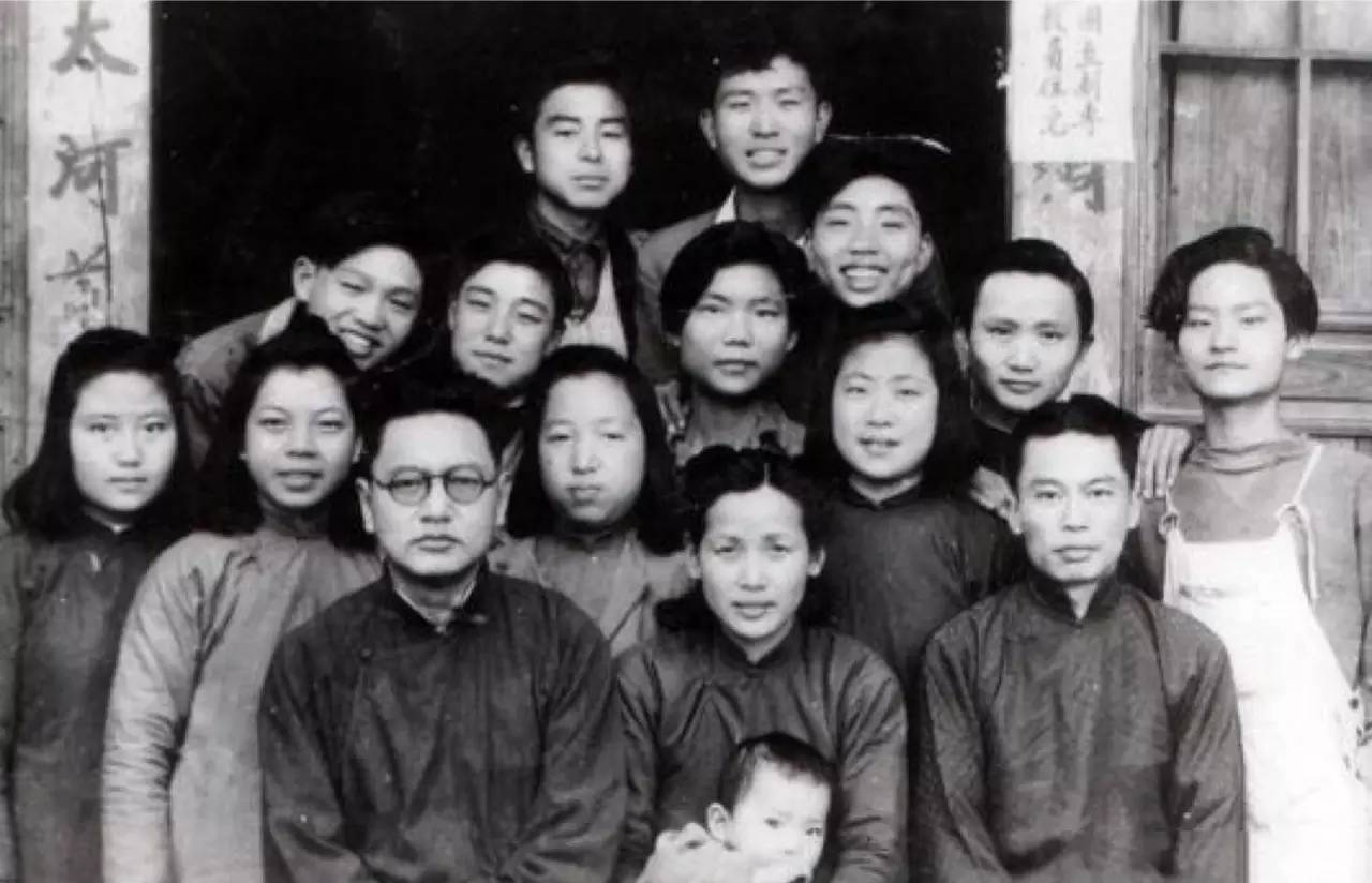 一九四二年秋天,在四川江安,洪深(坐左)和妻子常青真(坐中)以及国立戏剧专科学校学生合影