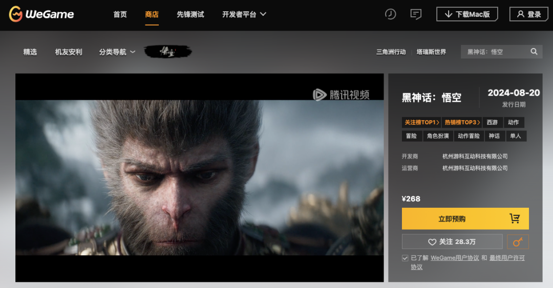 作为国产首个3A大作,《黑神话:悟空》承载了太多国人玩家的期待,而另一边对它抱有期待的或许也还有腾讯的游戏商店WeGame平台。