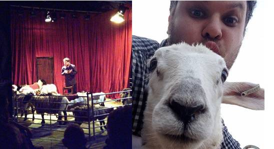 万万没想到,玩的最欢脱的,居然是英国人自己。这部名叫《李尔王与羊》的戏剧,主演是一个人和九只绵羊,羊演员们甚至还都有特制的戏服。