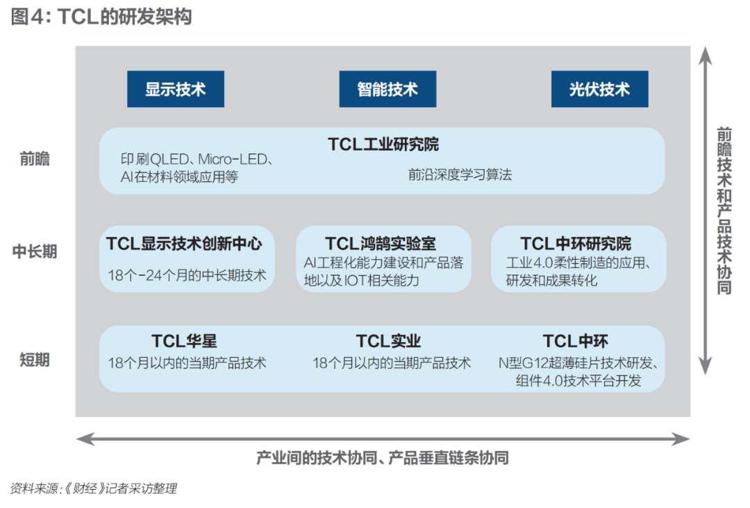 智能终端业务是TCL的第一增长曲线,半导体显示是TCL的第二增长曲线,光伏是TCL的第三增长曲线,第一第二增长曲线是内生性增长,第三增长曲线是外延式增长。对于TCL的未来,李东生在《财经》的专访中表示,面板和光伏产品都应用半导体技术,TCL还会继续发展半导体相关产业,未来十年,TCL的业务不会越出四个领域,这四个领域如果都能做到行业头部,TCL足以做到万亿元规模。