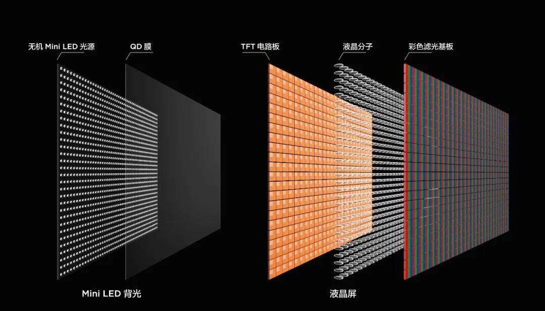 具体到Mini LED技术,张少勇表示,它本质上是基于LCD整机技术的优化。屏幕没有变,但背光技术发生质变,原来是一整块光源,如今变成数千至上万分区的光源,分别通过Mini LED灯珠点亮。Mini LED用到的分区背光技术在行业里并不罕见,但之前难以做到数千至上万的分区,这种变化能够实现,是多方面技术进步的共同结果。