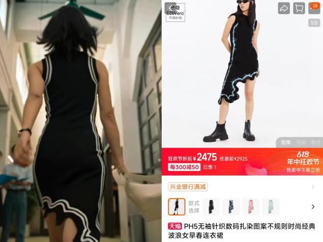 同时,蓝盈莹饰演的关芝芝,剧中穿了件PH5波浪连衣裙,在淘宝官旗店售价2475元;但是潘哥发现,该品牌直到2014年才成立,而电视剧的背景是2001年。