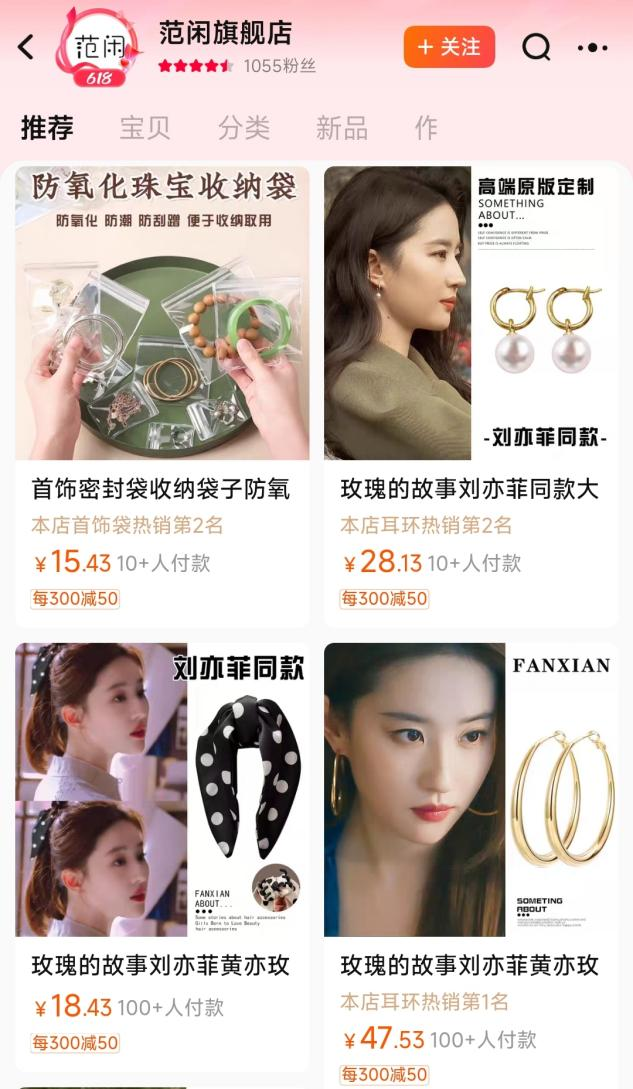 另一边,一副剧中人黄亦玫同款耳环,折后价在47元左右,一周内超过100人购买,而这家网店的名字,竟叫做“范闲旗舰店”,不知老板是故意的、还是不小心。