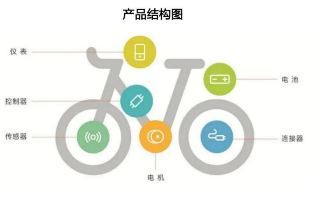 E-bike比传统自行车多了6个部分,传感器、控制器、电机、连接器、电池和仪表。用户踏动踏板,传感器检测到力量后,向控制器发送信号,控制器指令电机提供相应等级的助力,从而让用户达到省力的目的。
