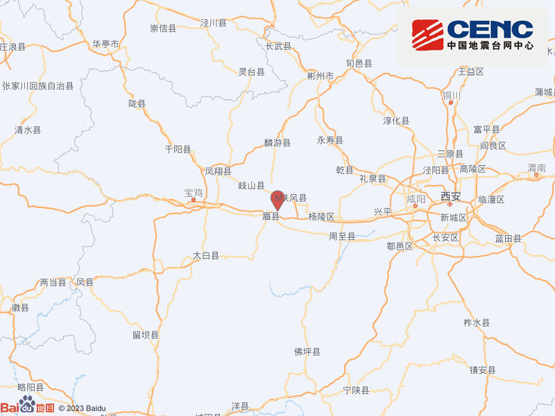 陕西宝鸡市扶风县发生2.8级地震,震源深度15千米
