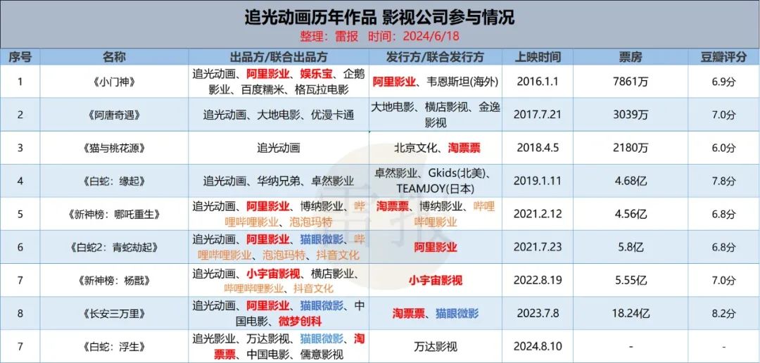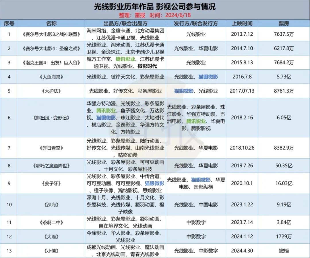 纵观近年来成绩突出的国产动画电影,少儿赛道之外,“追光”“光线”几乎是两家独大,雷报也经常拿两家的成绩进行对比。