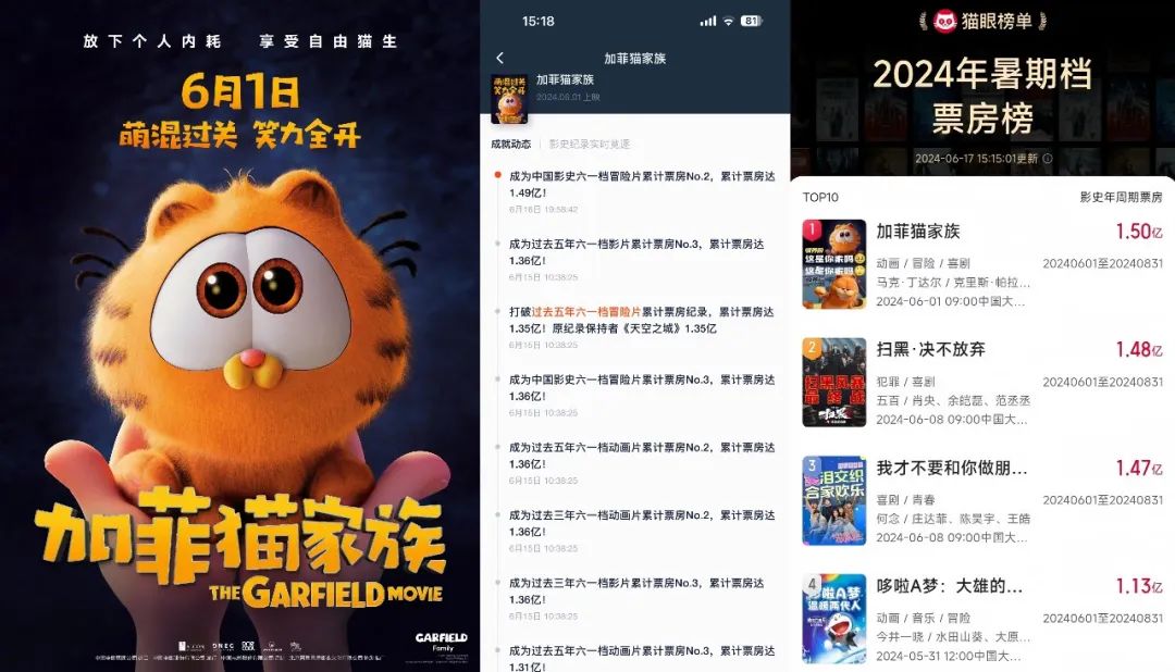 《加菲猫家族》于6月1日上映。该影片基于吉姆 戴维斯的著名漫画《加菲猫》进行改编,也是童年经典IP“加菲猫”时隔18年之久重回内地大银幕。
