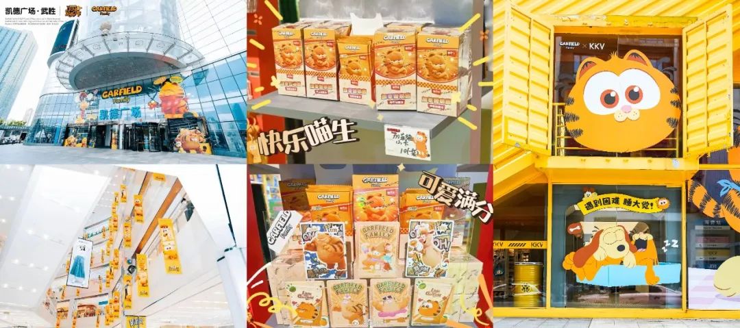 6月4日,神奇地带x加菲猫家族限定周边上线,包括毛绒包、保温杯、亚克力立牌、冰箱贴、地垫等多款产品;6月8日,集卡社推出了加菲猫家族电影正版收藏卡;首届加菲猫家族芝士主题派对也于6月8日落地武汉;6月17日起,KKVx加菲猫家族联动主题店活动正式上线,7家主题店和15家打卡店,引来粉丝热情打卡和消费……加菲猫家族在线上线下的授权活动正进行得如火如荼。