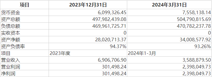 数据显示,成立于2023年的赢古能源,注册资本为6000万元,截止2024年3月31日,赢古能源的货币资金仅755.81万元,资产净值未3400.85万元,负债总额为4.71亿元,资产负债率高达93.26%。2023年度,赢古能源的营业收入仅690.67万元,净利润为30.15万元。货币资金较少,资产负债率较高,这就是接盘者赢古能源的真实写照。