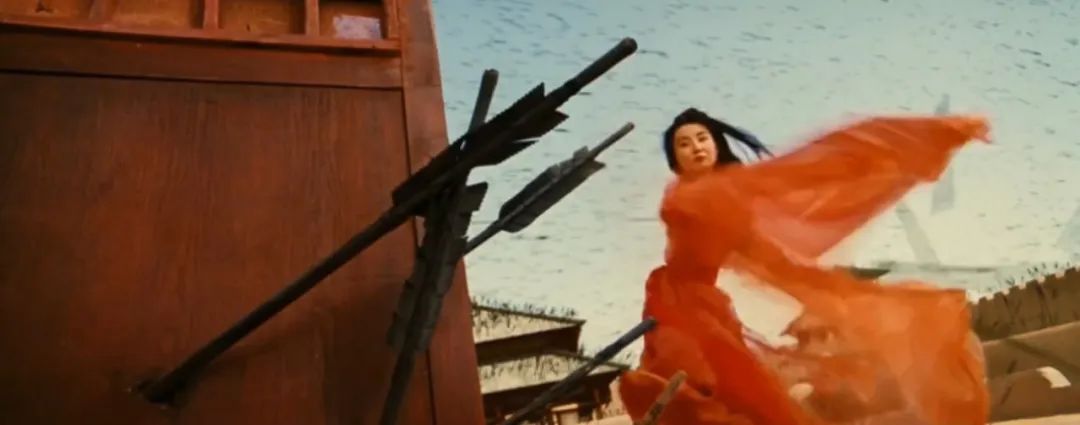而论起浪漫,早在《英雄》《十面埋伏》《满城尽带黄金甲》里,张艺谋就展现了超越时代的想象,根本不把牛顿和物理放在眼里。《英雄》里,张曼玉两条大红袖子一挥舞,就把成百上千的箭簇给挡下了。梁朝伟和李连杰在水面旋转跳跃击剑,脚脖子都湿不到。《黄金甲》里,绝壁之间黑衣人弹射几根触手就完成飞渡,极限运动爱好者看了都说好。