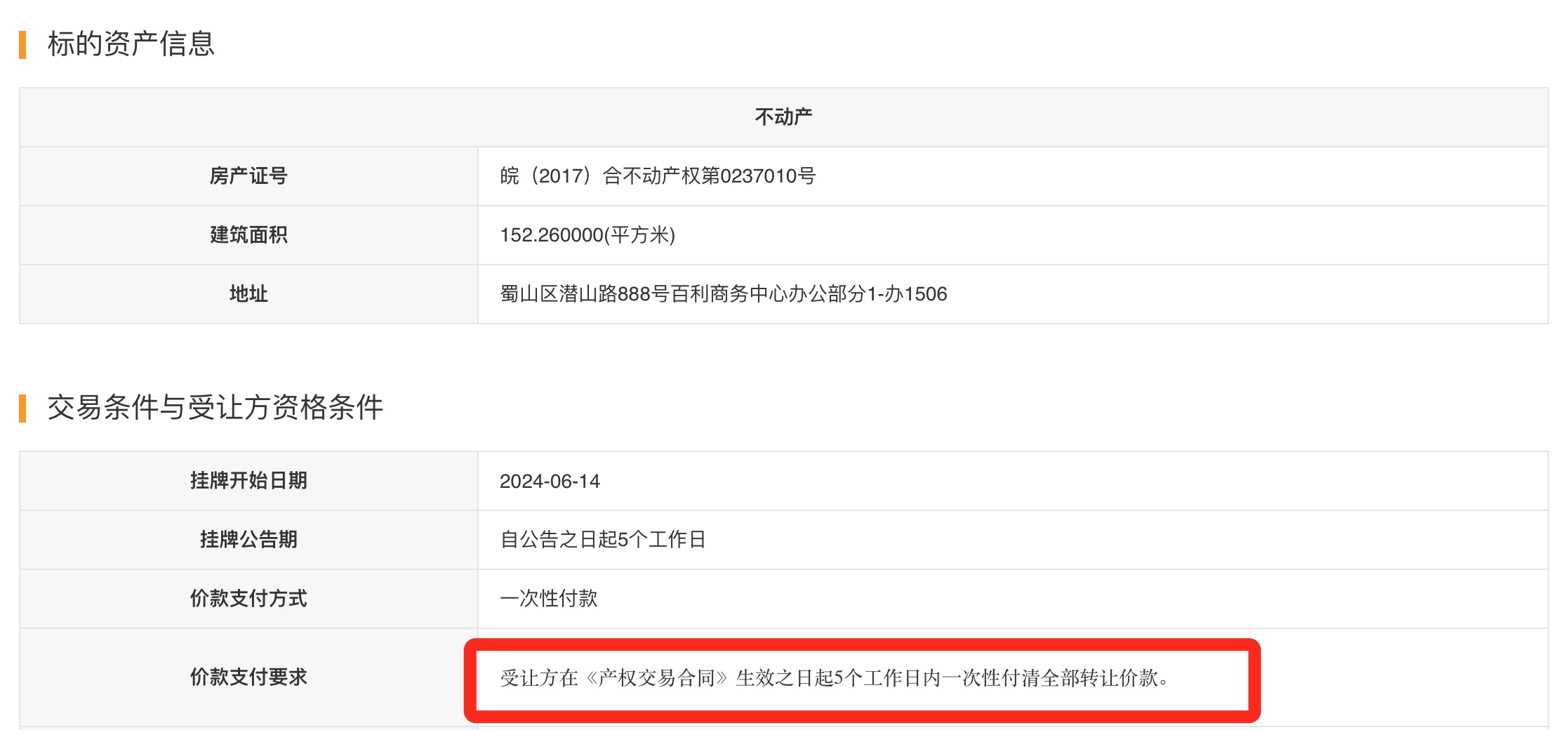 据悉,企业近期待售资产涉及合肥市蜀山区百利商务中心及合肥市蜀山区置地广场多个地块,金种子酒要求意向受让方《产权交易合同》生效之日起5个工作日内“一次性付款”。