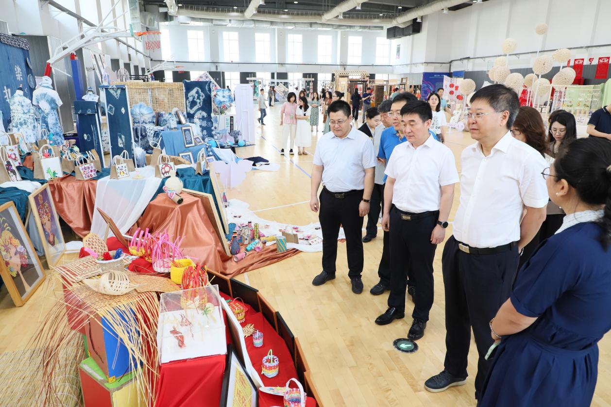 会后,与会人员参观了青岛市艺术教育展示暨西海岸新区美育成果展。本次展览展示了西海岸新区32所中小学美育成果,包含剪纸、簪花、叶雕、纸艺、版画、年画、葫芦烙画、扎染、书法、皮影等,参展作品或古朴典雅、或清秀壮美,融合艺术与科技、传统与现代,突出青岛地域文化特色的同时,充分体现了新区师生对美和创新的不懈追求。