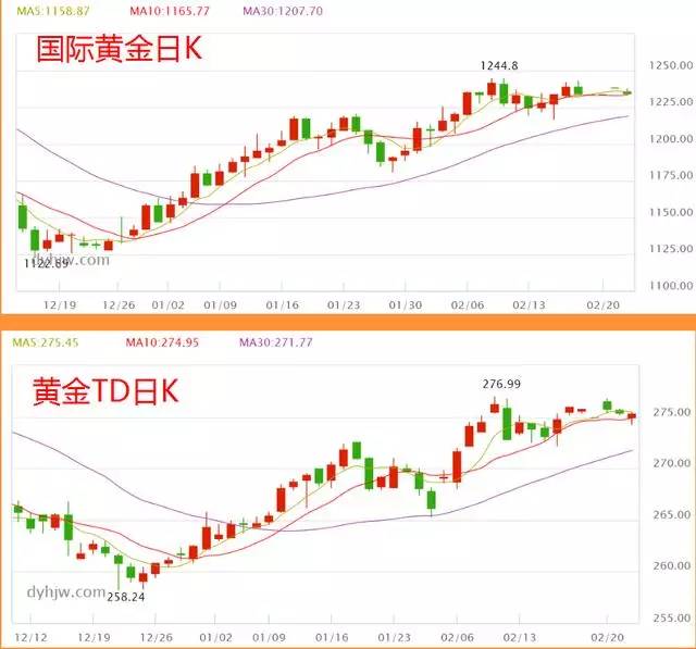 从目前的行情来看,不管是国际黄金,还是上海黄金TD都处于弱势震荡行情。目前国际黄金处于1230~1240之间波动,而上海黄金TD处于273~277之前波动。